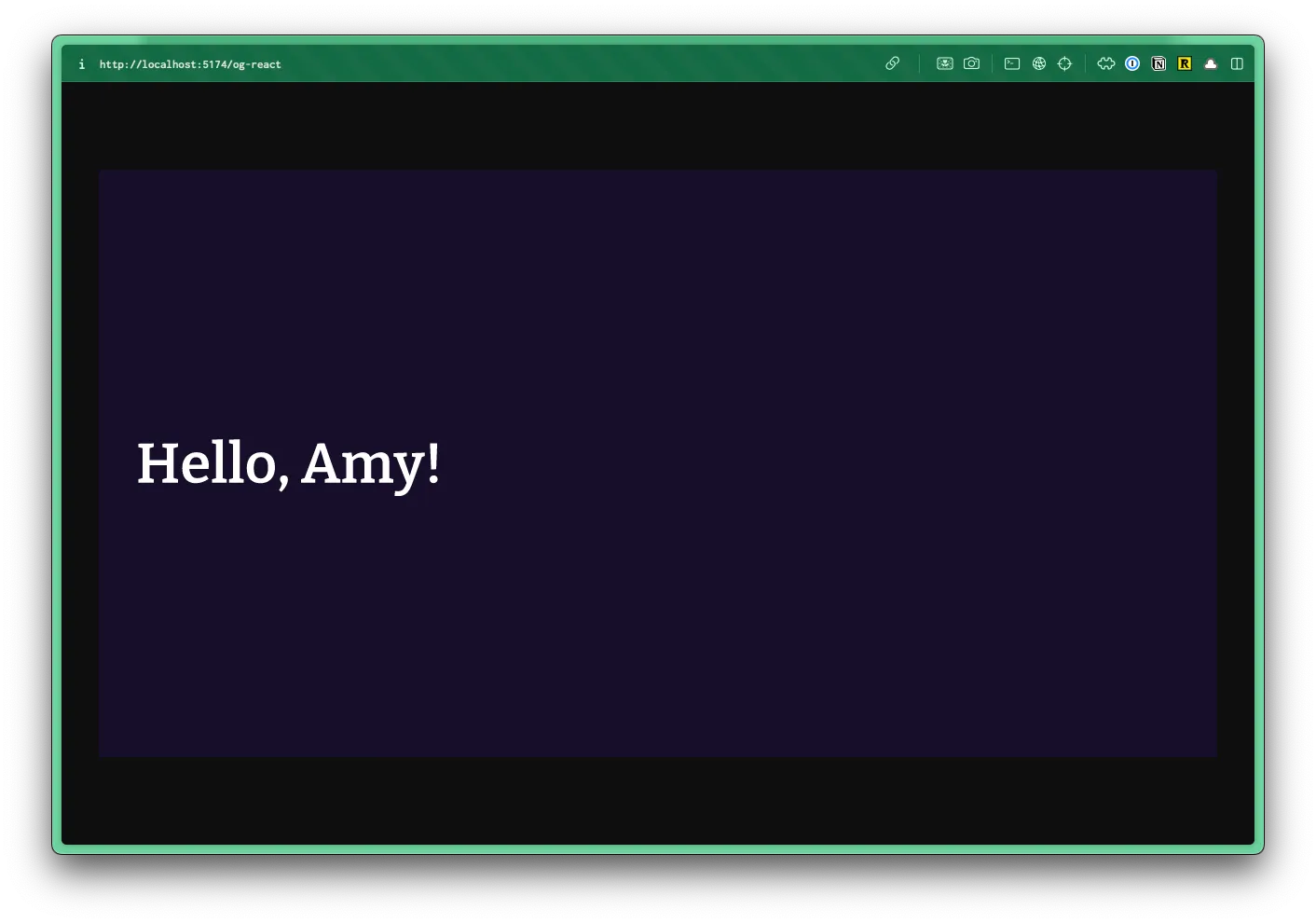 const title = "Hello, Amy!"; const og = <Og title={title} />;